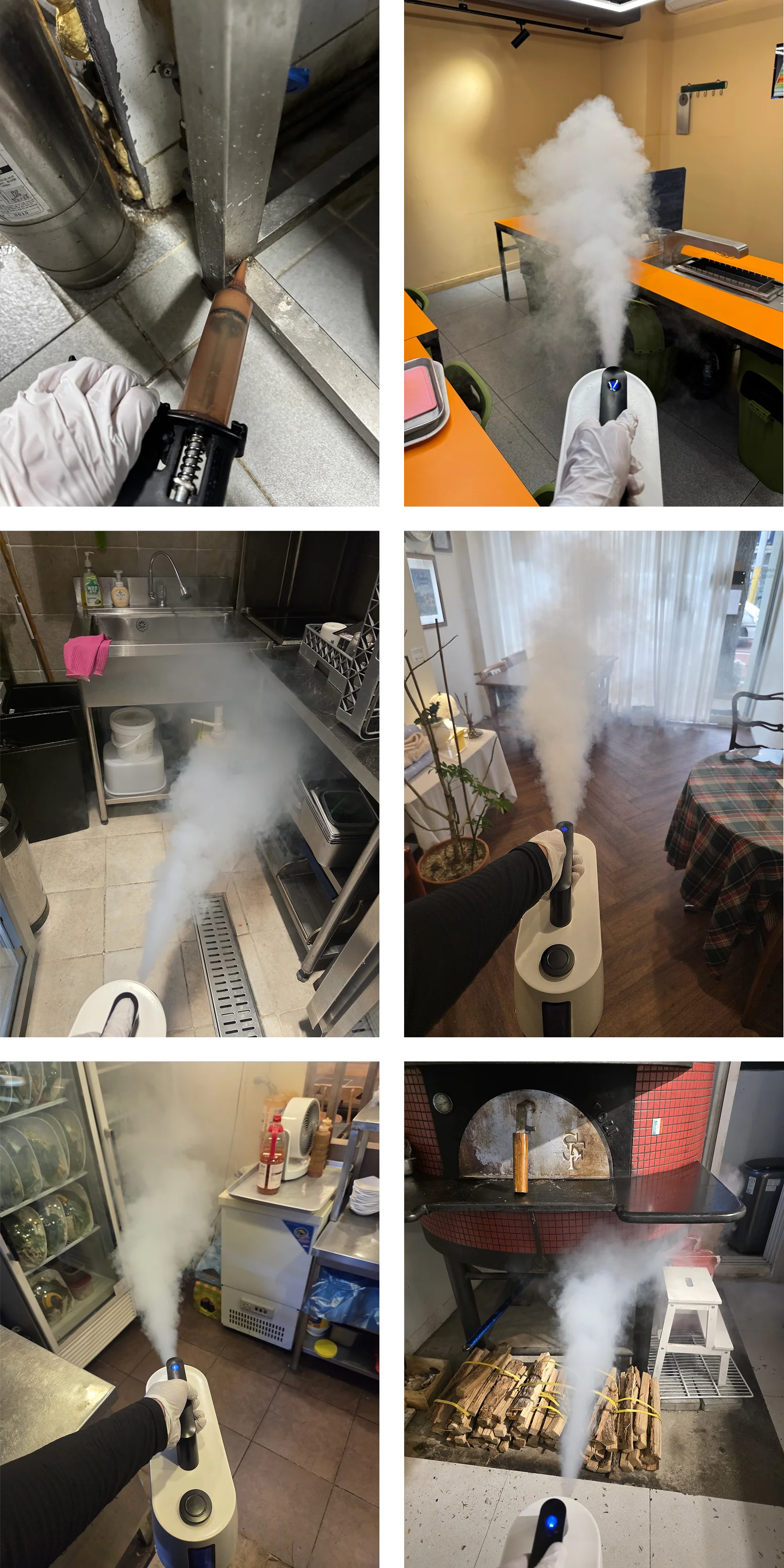 쥐로 인해 오염된 공간 전체에 전문 약품을 분사하여 소독하는 과정입니다.