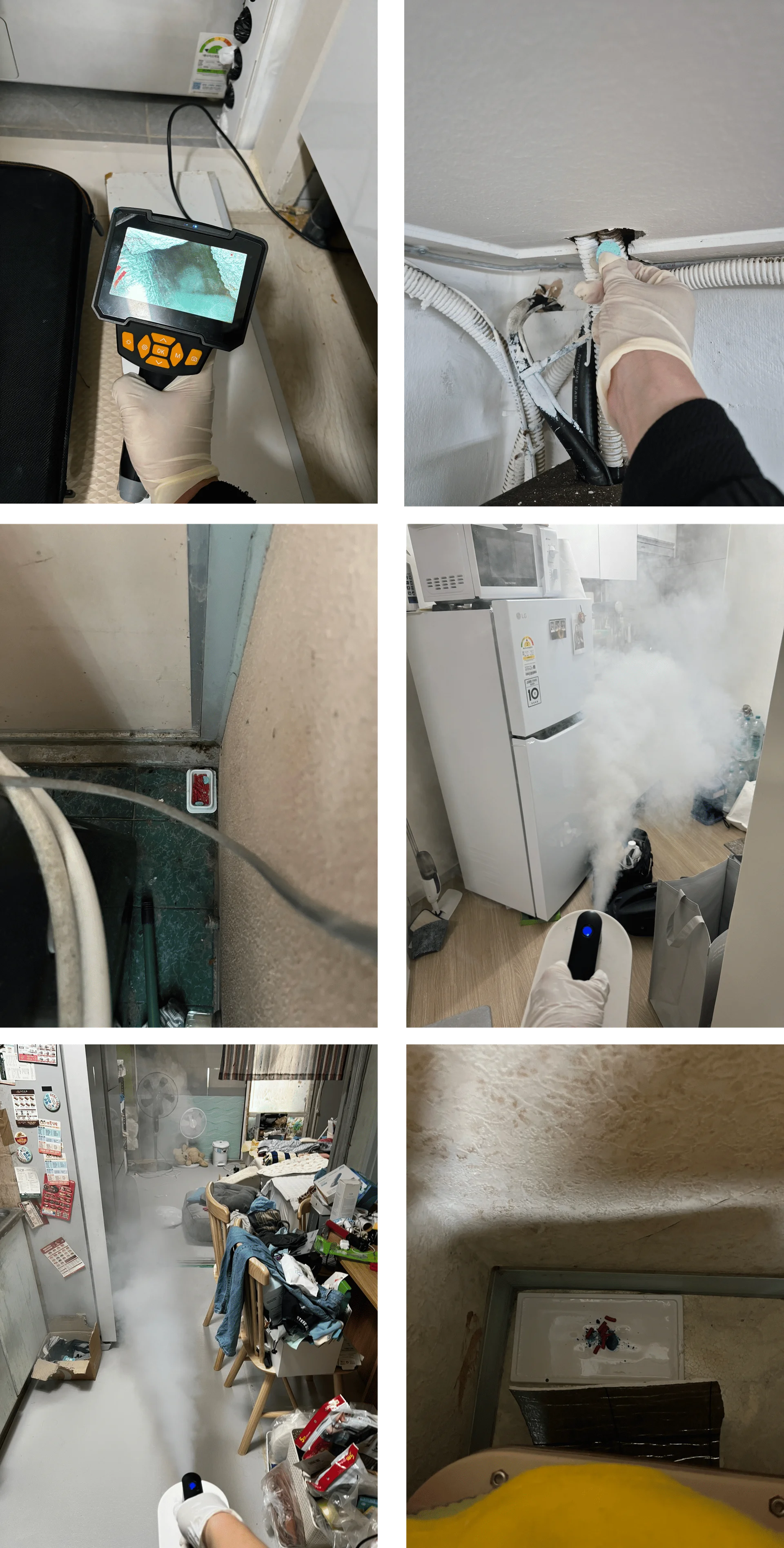 세이브프롬의 쥐 방역 전문가들이 방문하여, 내시경을 통해 쥐의 배설물과 흔적을 발견합니다.