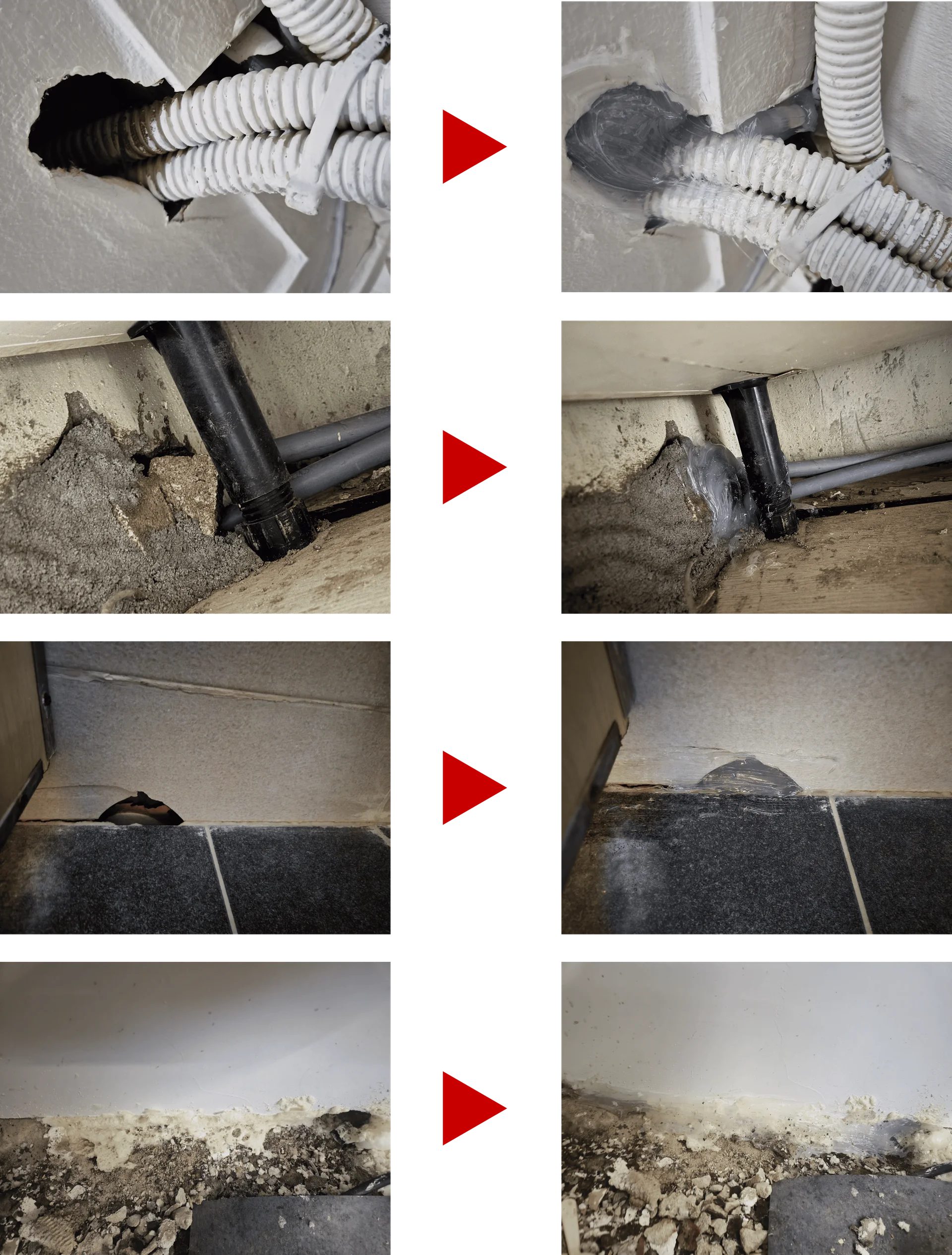 쥐가 드나들던 구멍은 보통 배관 틈이나 시멘트 마감 불량 부분에 숨어 있습니다.