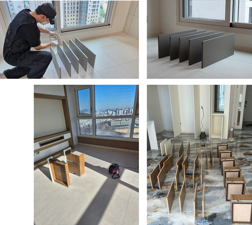 가구 탈거 후 가구, 몰딩, 마감재 등 틈새에 있는 유해물질을 제거합니다.