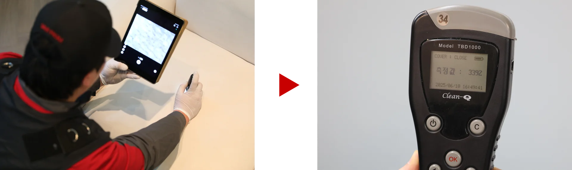 클리닝 전후를 비교하여 고객님께 결과를 보여드리고, 최종 확인을 통해 만족도를 높입니다.