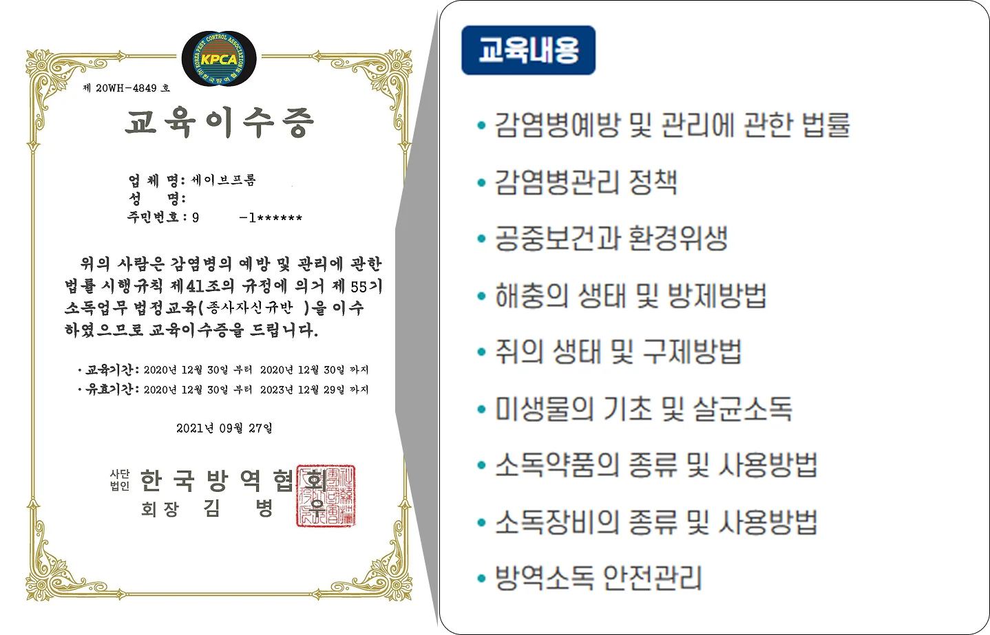 세이브프롬은 클리닝 교육 뿐만 아니라 방역·방제 교육까지 이수 받습니다.