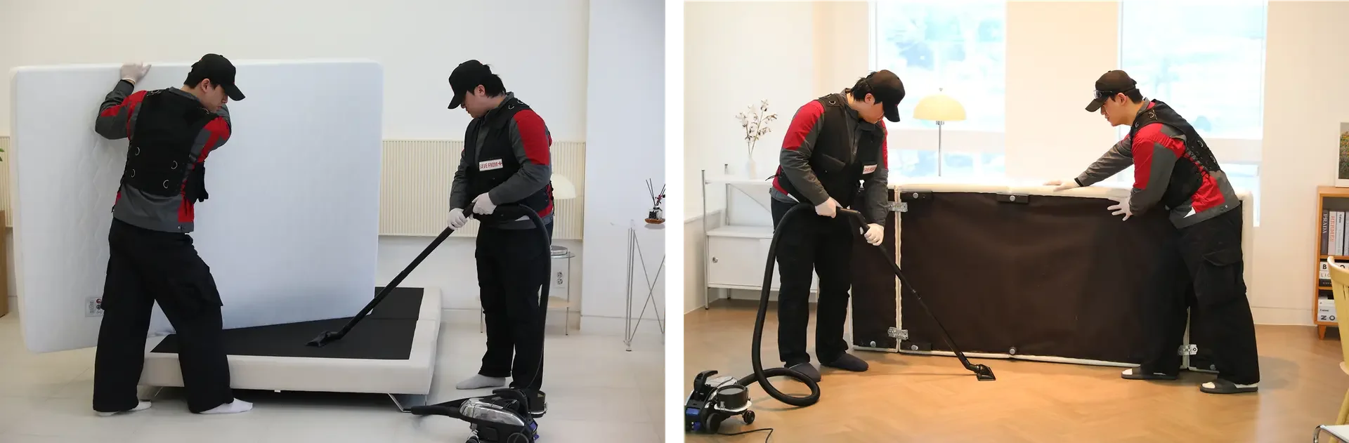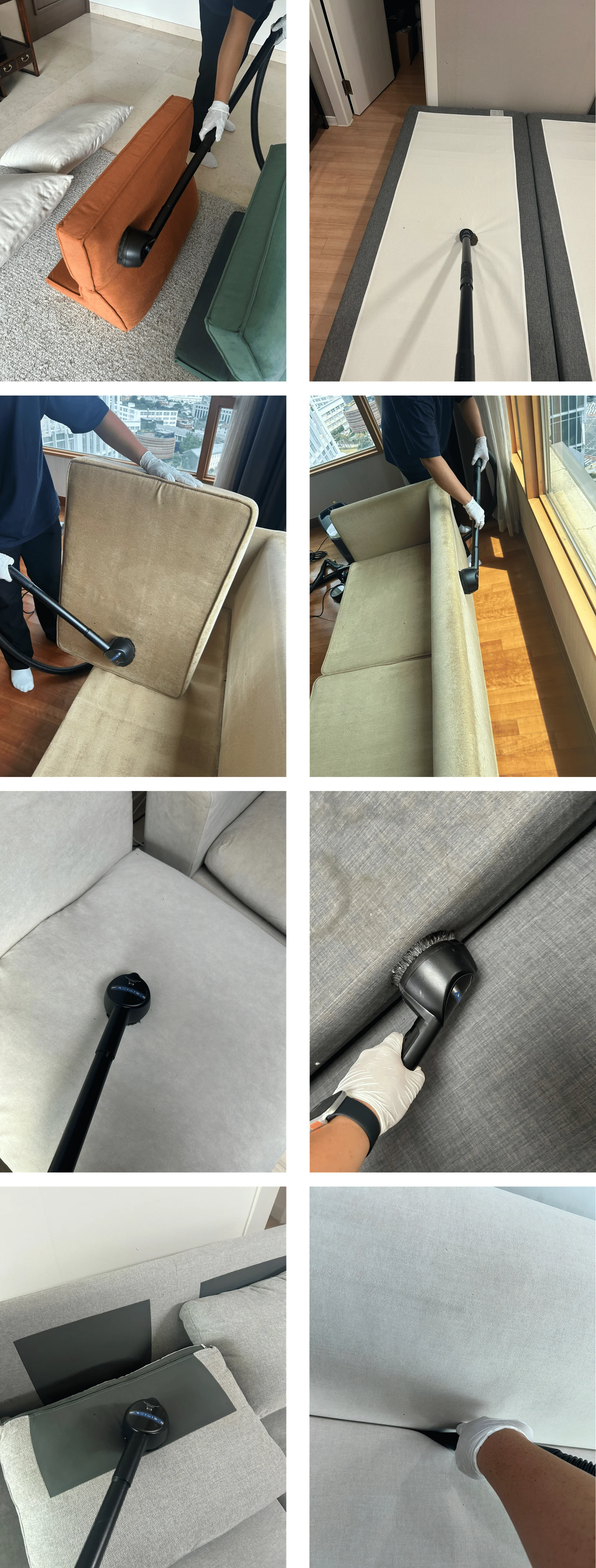 매트리스의 경우에는 침대 프레임을 청소해드리며, 소파의 경우에는 하부를 청소해드리는 작업입니다.