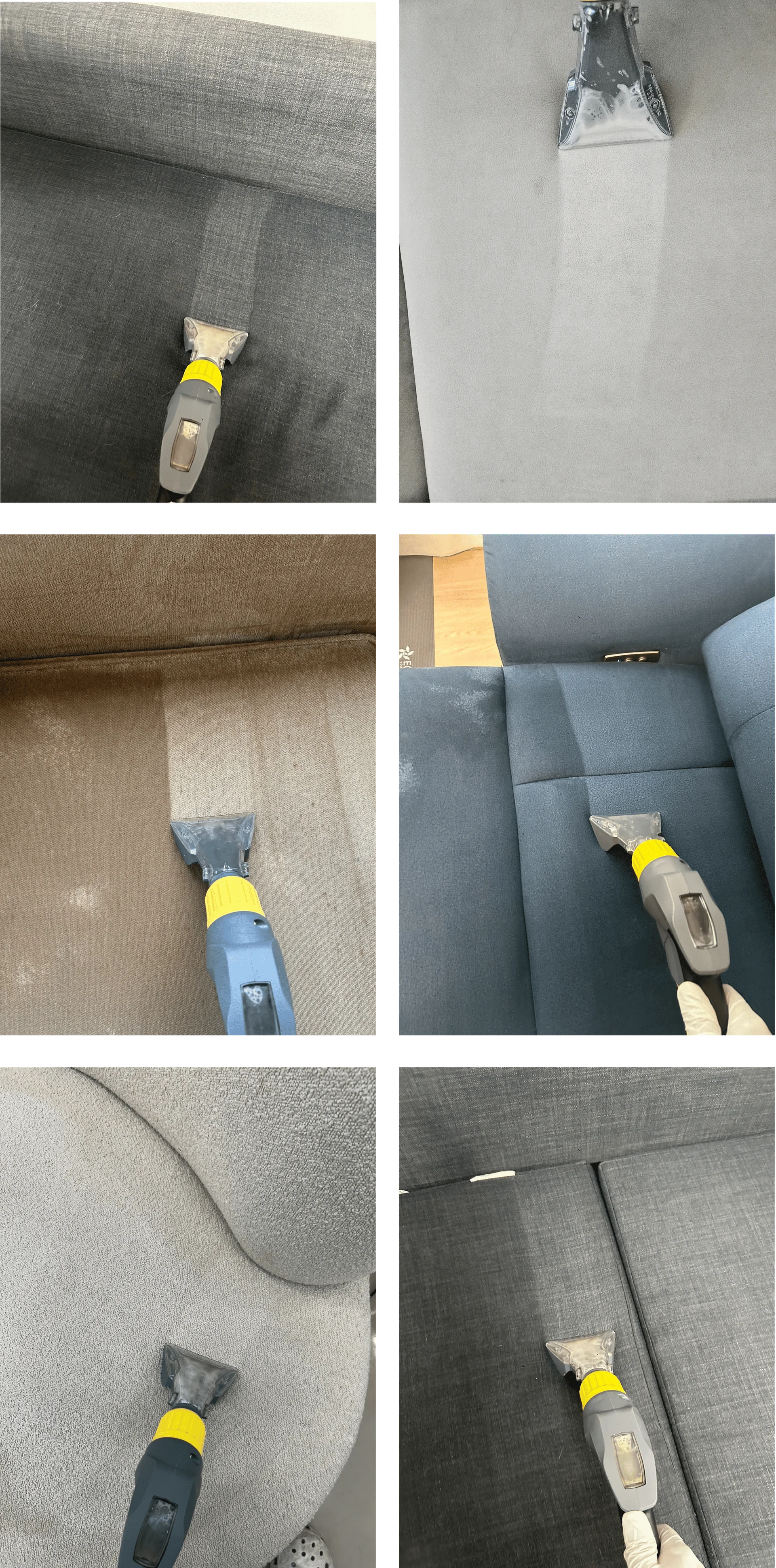 흡입력이 강력한 전문 청소기로, 눈에 보이는 얼룩은 물론 소파 깊숙이 숨어 있는 오염물까지 완벽하게 제거합니다. 또한, 흡입력이 좋기 때문에 물도 더 많이 흡수해 습식 청소 후 패브릭 소파에 곰팡이가 피는 것을 막을 수 있습니다.